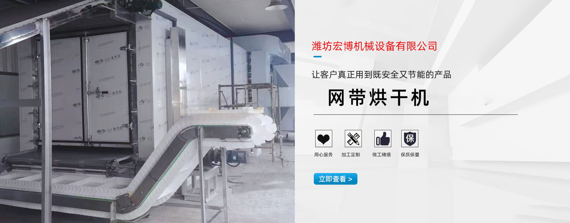 我公司主要产品有:网带烘干机、滚筒烘干机、隧道窑、燃气热风炉、电热风炉、矿用防爆电加热器等。产品主要用于矿业、食品、饲料、耐火材料、金属选矿、非金属矿产品、等各种物料的加工,烘干及高大型车间和矿井的采暖。